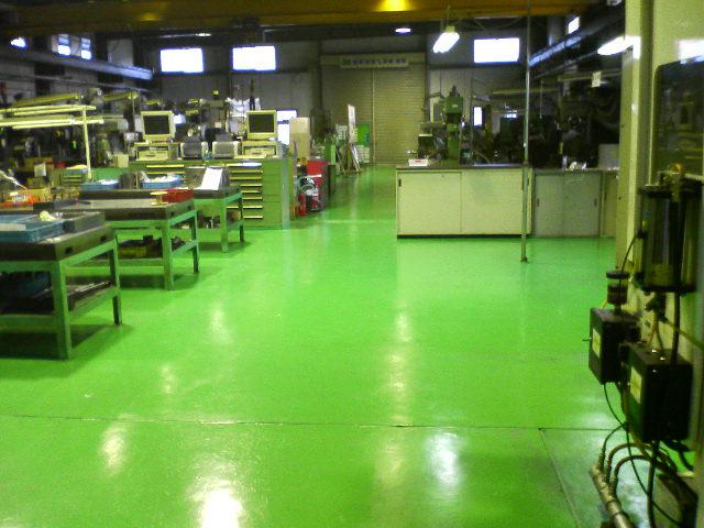 アクリル系のグリーンの塗料で塗るのですが、これがまた具合が非常に宜しい。工場内が明るくなるんです。