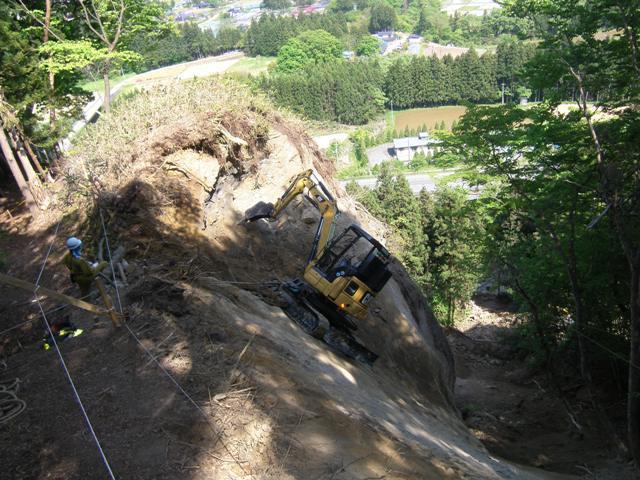 (3) 急傾斜のため、通常の掘削機械では転落災害の危険性がある