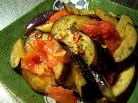 畑のナスとトマトをガーリックオイルで炒めちゃいました(^_^)v