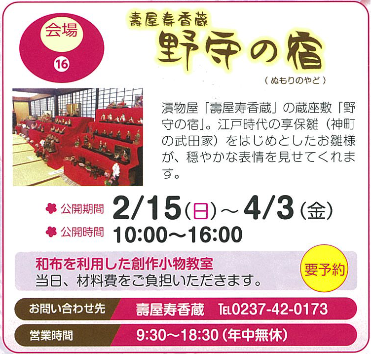 問合せ先 壽屋寿香蔵 Tel 0237-42-0173