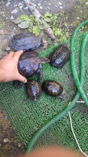 写真 Sちゃんが飼ってる亀。一番小さい亀の上に2匹デカイ亀が乗ってました。(写真1)