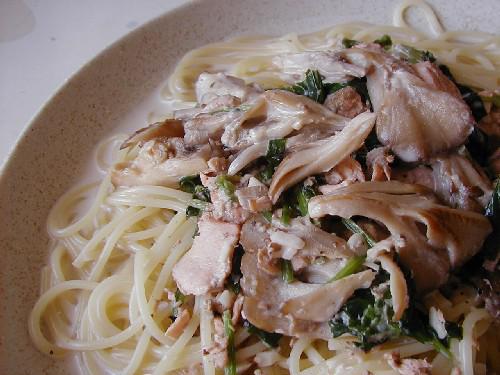 写真は、天然舞茸を使って作った「舞茸スパゲッティー」