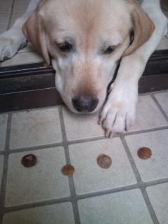 武蔵が拾って食べている。すっぱくないのかなぁ〜〜〜
