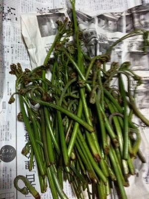とっても太いワラビを少々採ってきた。