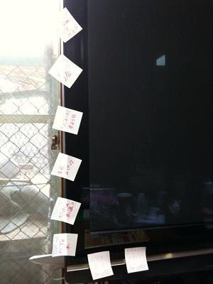 TVの周りに忘れないように貼り付けた。