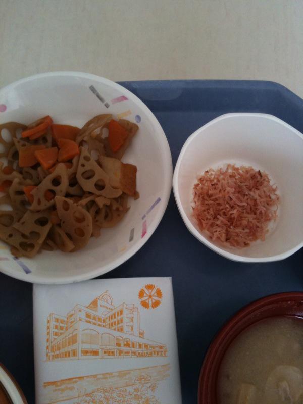 レンコンの煮物、納豆、牛乳。