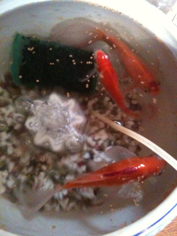 明日は金魚鉢を洗わなきゃって思ってたんだぁ。
