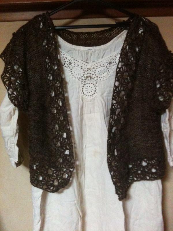 棒編みとかぎ編みでボレロ風に仕上げてみました。