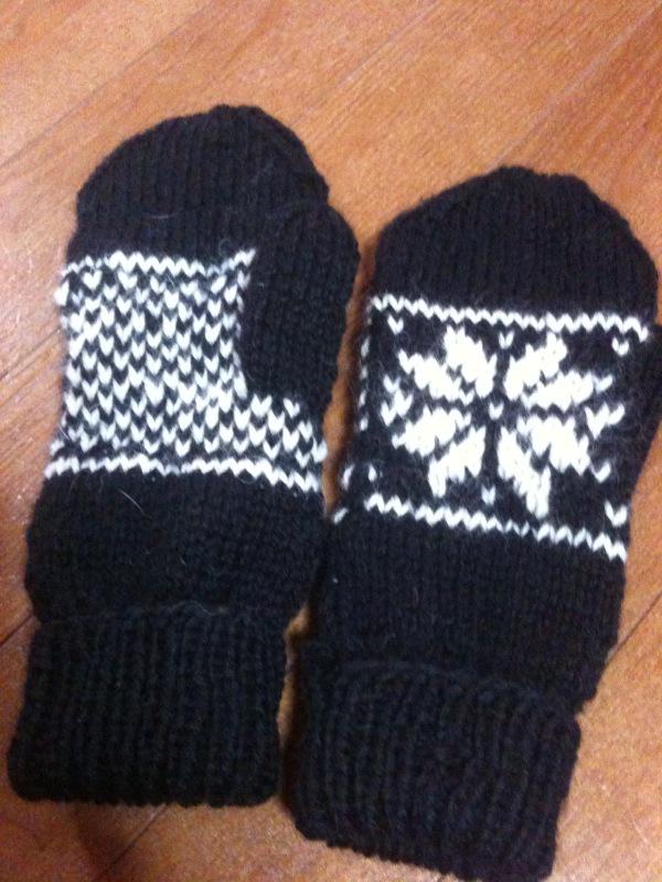 お流行りという事で今年は雪柄の手袋を編んでみた。