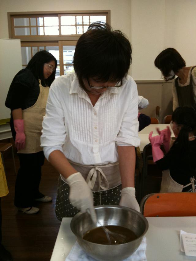 苛性ソーダは劇薬なのでゴーグルか、メガネをかけてします。あたしはお手元用のメガネで。老眼鏡だろ(笑)