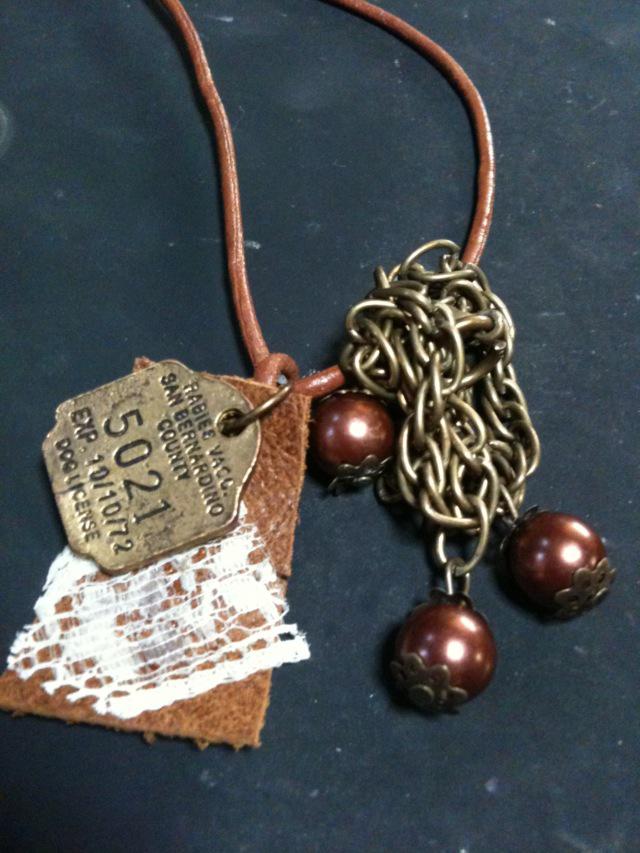革ひもに革ハギレとチャームを通して簡単に出来ちゃう。しかもオシャレ。