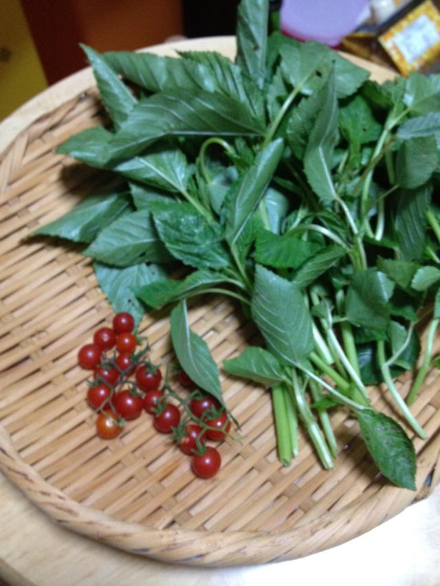 ここ2〜3日でモロヘイヤがワサワサとおがってきた。おひたしでいただこう。マイクロミニトマトも少し収穫。