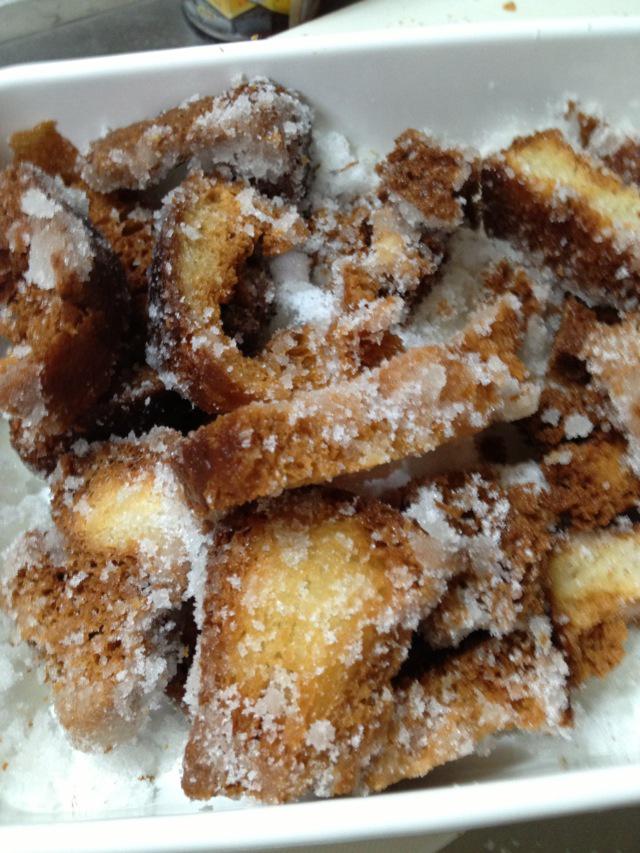 んで、食べきれなくてちょっと硬くなったパンを揚げてみた。