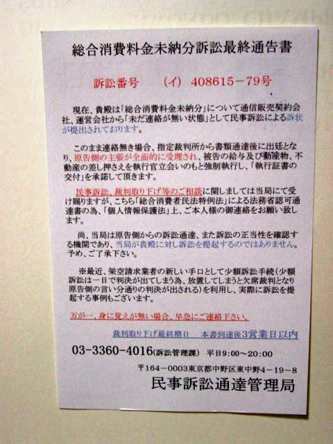 本当に小額訴訟とかだったら、裁判所から「特別送達」ってのが封書で来るそうです。