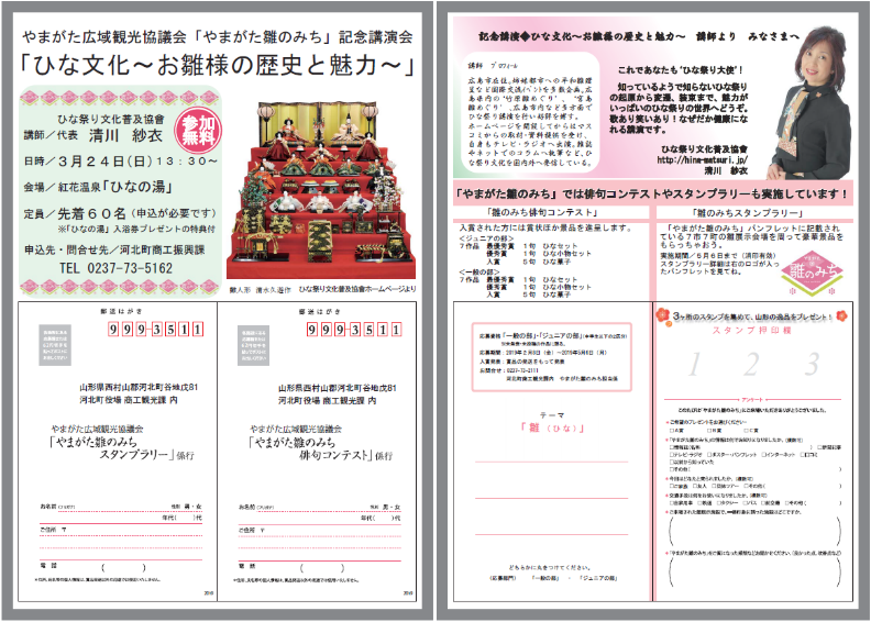 申込・問い合わせ先:河北町商工観光課 やまがた雛のみち講演会担当係