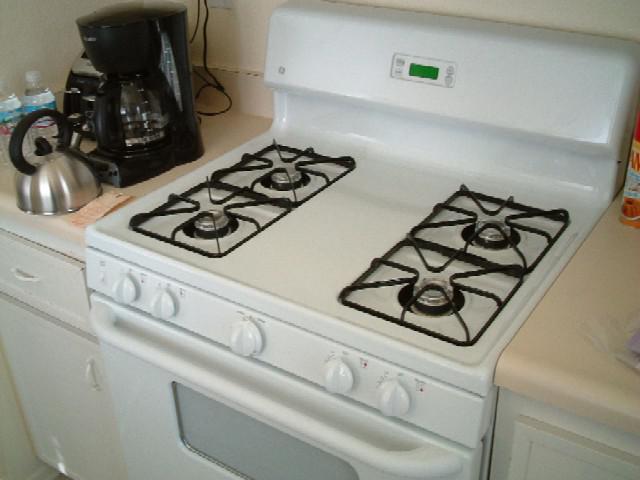 引っ越してすぐ新品のガス台と食器洗い機が到着。アメリカのアパートにはガス台、食器洗い機、冷蔵庫が元々付いていて、古くなったら大家が交換する。私たちの場合は、「このガス台と食器洗い機、ついでにカーペットを新しくしてくれたら入居する」という条件だったので、新品のガス台と食器洗い機到着!こっちでは標準的な4つのガスコンロにオーブン。キッチンもまな板二つ乗せれる広さ。しかし、配達された当初から食器洗い機は故障中。新品なのに最初から故障しているあたり、ウ〜〜ン、アメリカン!