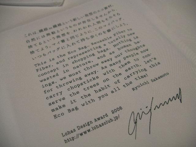 ロハスクラブ理事の坂本龍一さんのメッセージ入りです。
