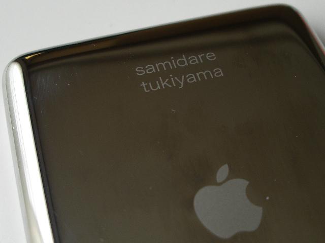 ファミリー用初のiPod。レーザーパーソナライズサービスにて刻印しました!samidare(さみだれ)とtukiyama(つきやま)。