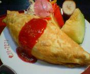 山形市びんず-BEANS-のレディースランチ、むりやり夜注文してわがまま聞いてもらいました!!オムライスがメインでおみそ汁や前菜などがつきます。とにかく超密度!ハード系オムライス。スプーンのうらっかわでパンパンたたいていい音がでますよ。