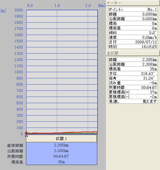 走った印象としては、若干下り基調のあと、若干上り基調になってるかな?