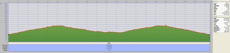 実走ではデータとれない区間が多かったので、カシミールで作成した勾配図を掲載します。