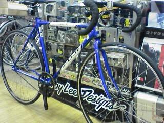 固定ギヤの完全トラック仕様です。…が、Rハブは両側にネジキリがあるタイプですので、反対側にフリーギヤを取り付ければ反転させるだけで(オプションのブレーキセットも取り付け)ストリートバイクとしても使用可です。何しろ内容に反した低価格が魅力のこのバイク、冬場ロードの回転練習用としても重宝しそうです。