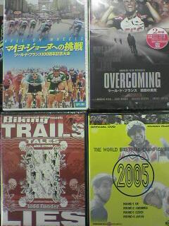 OVERCOMINGの字幕版『ツール・ド・フランス〜激闘の真実』、HELL ON WHEELSの字幕版『マイヨ・ジョーヌへの挑戦〜ツール・ド・フランス100周年記念大会』、トライアルの決定版『THE WORLD BIKETRIAL CHAMPIONSHIP 2005』等、再入荷してます!!