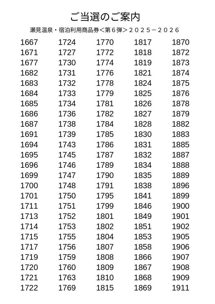 ▼2025 お得な宿泊券 当選番号です。確認お願いします。