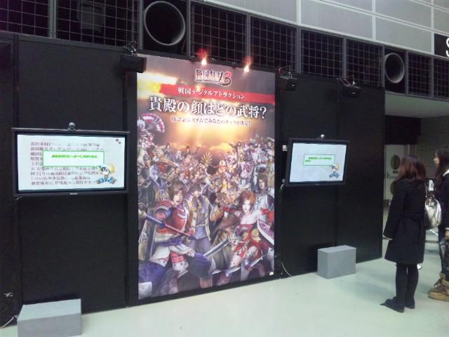 会場に戦国デジタルアトラクションっていうものがありまして、これはお客さんが戦国無双のどのキャラに似ていて、さらに何%似ているかっていう顔認証システムを利用したモノなのです。これが結構面白い v(^_^)v