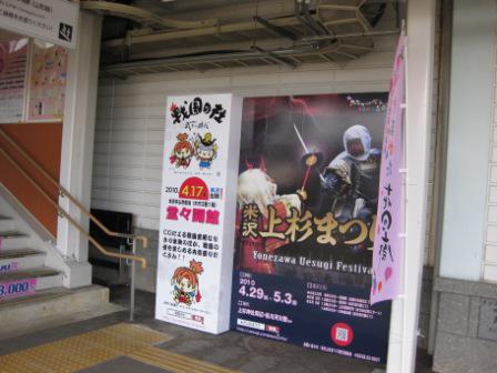 毎回おまつりの前には、JR米沢駅(1番線ホーム)・福島駅(東西自由通路)・伝国の杜(正面入口前)に協力していただき、