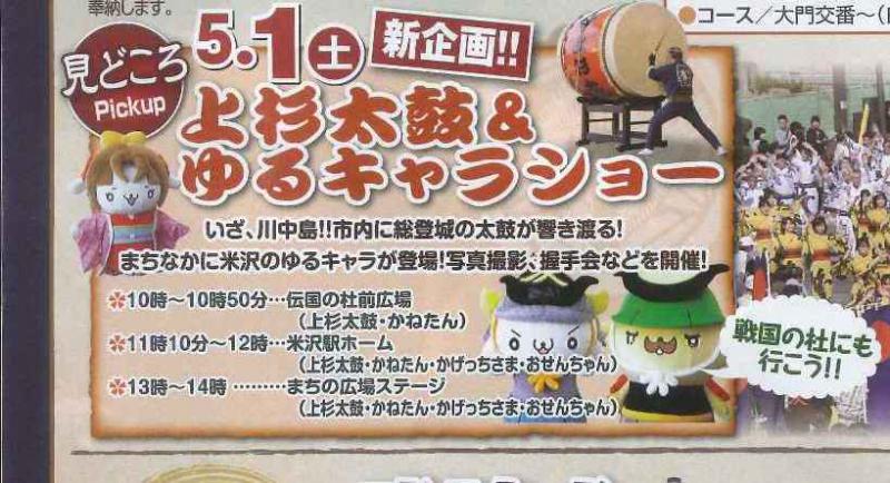 勇壮な上杉太鼓とゆるキャラという異色のタッグをお楽しみ下さい!