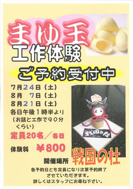 体験時間は、工作とまゆ玉についてのお話で約90分ほどです。