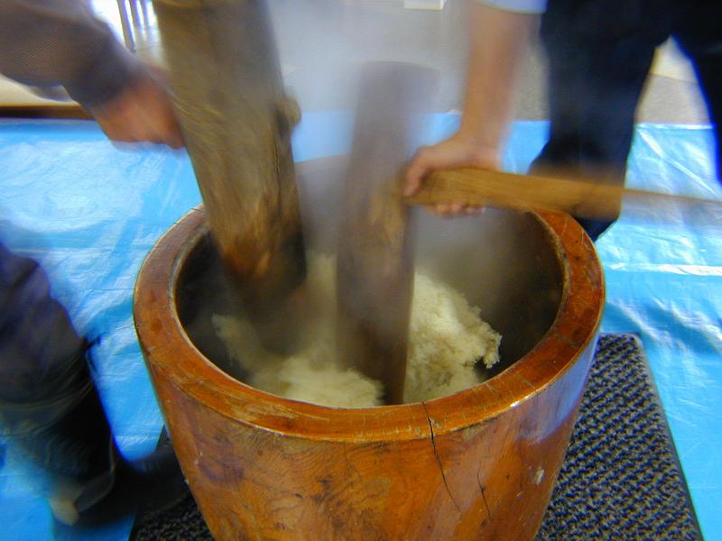 正月恒例の朝の餅つきの始まりです。