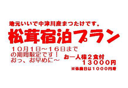 残暑は続きますが、すすきが秋の気配を感じさせます。今年も期間限定にて地元中津川産の松茸のみを使った宿泊プランを開催致します。去年はまれに見る大豊作!今年はいかに?地元中津川産の松茸を是非ご賞味ください(*^_^*) 白川荘 0238−77−2124