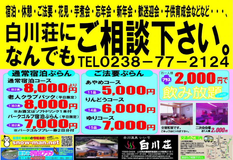 お泊・部落の集会・契約・花見・歓送迎会・芋煮会・子供会などなどの幹事さんへ
