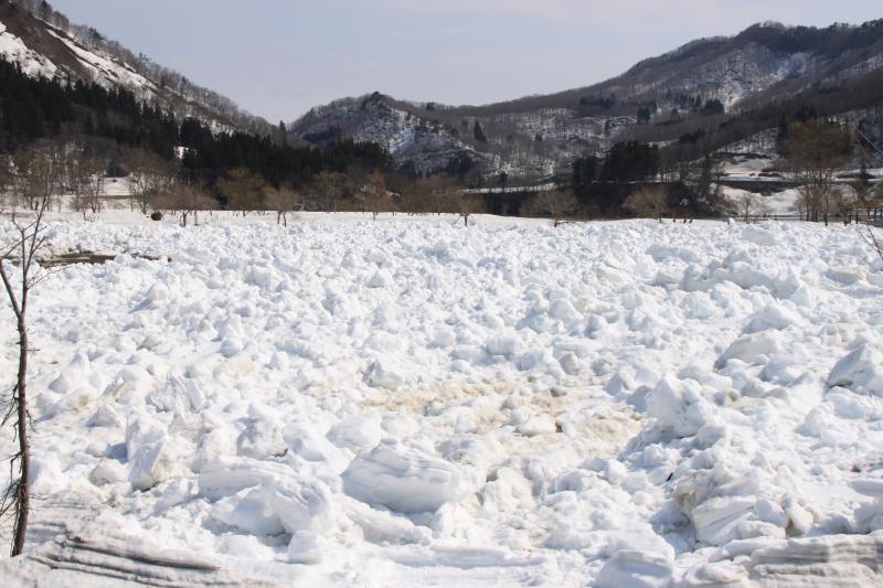 例年であればパークゴルフ場もそろそろオープンのはすですが、今年の大雪がまだ尾を引いておりまして、ここ白川湖パークゴルフ場は残雪が1メートルほど残る状況です。そこで、少しでも早いオープンを目指し、ここ3日間大型重機2台で雪原を耕しているところです。このところ、ようやく気温が上がって雪解けも進んでいる状況です。来月13日には、第30回全国白川ダムマラソン大会が開催されるため、何としても雪を解かさなくてはと、必死です。