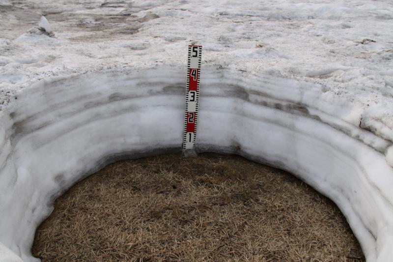 確実に雪解け進んでいます。今日夕方4時現在の様子。今日午前中は肌寒く、足踏み状態でしたが、ようやく午後から暖かくなり、残り40cmとなりました。