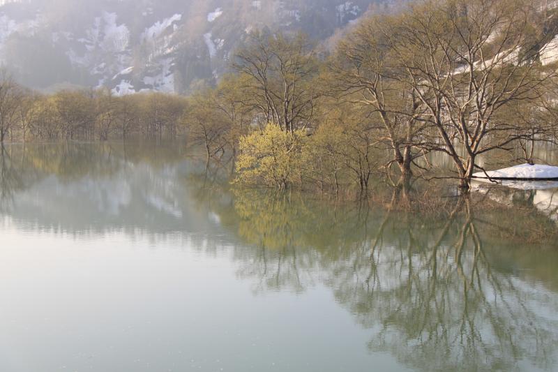▼絶景!白川湖の柳林