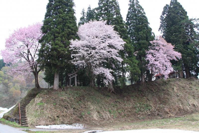 小屋羽黒神社の丘に咲く、三本桜が見ごろとなっていました。夜明け時からカメラマンがいるのにはビックリでした。
