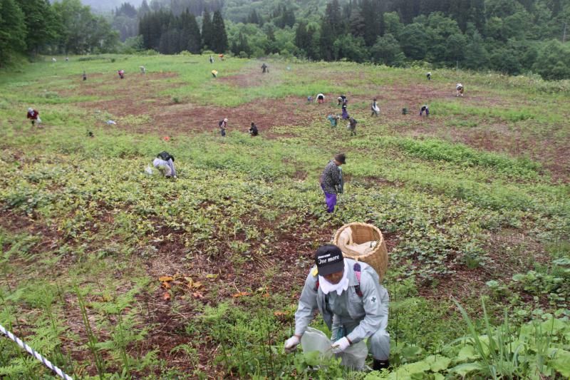 中津川の各わらび園は、ただ今どこも大盛況です。このところの雨が幸いして、ワラビがニョキニョキ状態。今朝のお客さんは「あまりにも出ているので、もう気が狂いそう!」と叫びながら、園内に飛び込んでいきました。大勢のお客さんが、無我夢中でだだひたすら黙々と採り続けていました。1時間半後、満面の笑顔で戻って来たその姿は、持ちきれないほど沢山のワラビを手に「大満足」を連発していました。本当に良かったね。また来てね。