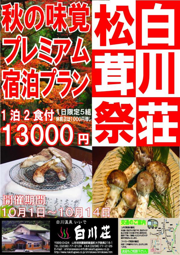 松茸三昧のプレミアムな内容で1泊2食13000円(休前日は1000円増し)