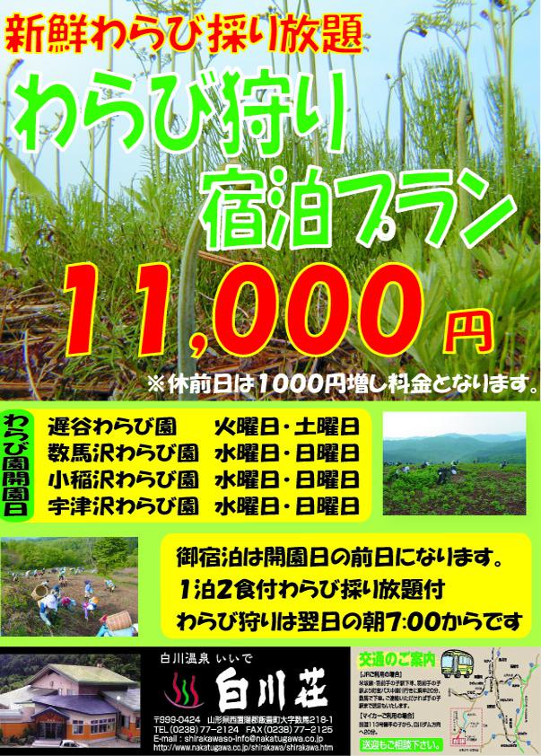 白川荘では人気プランのわらび狩り宿泊プランを今年もご用意しております。
