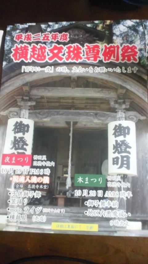 白鷹町 西田尻 高徳寺境内 横越文珠尊例祭の地域内のチラシです