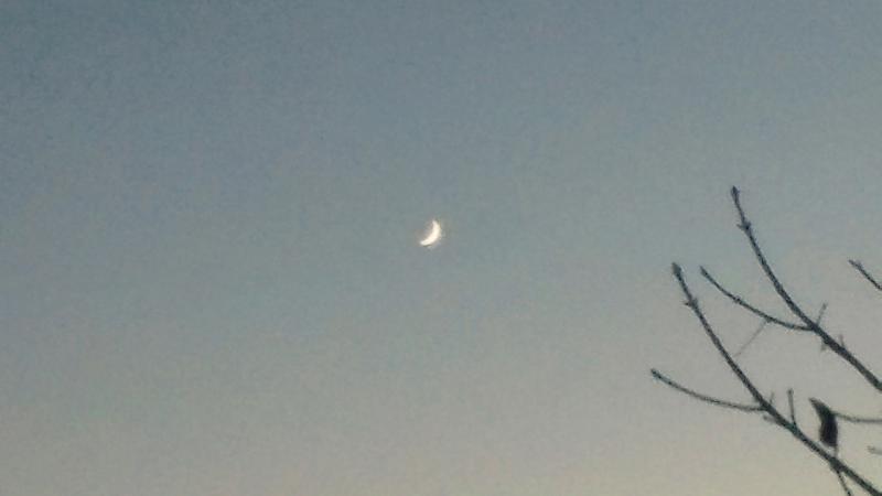宵闇迫る西の空に、三日月がポンと浮かんでいました