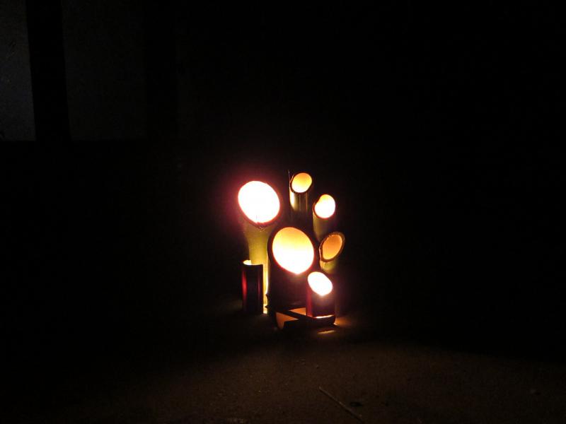 写真は、子供と自宅の竹を使って、初めて作った竹灯篭です。