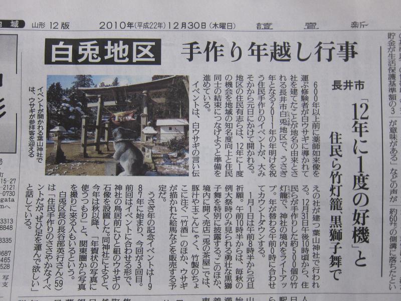 今朝の読売新聞朝刊に、白兎イベントが載りましたよ!(^^)!