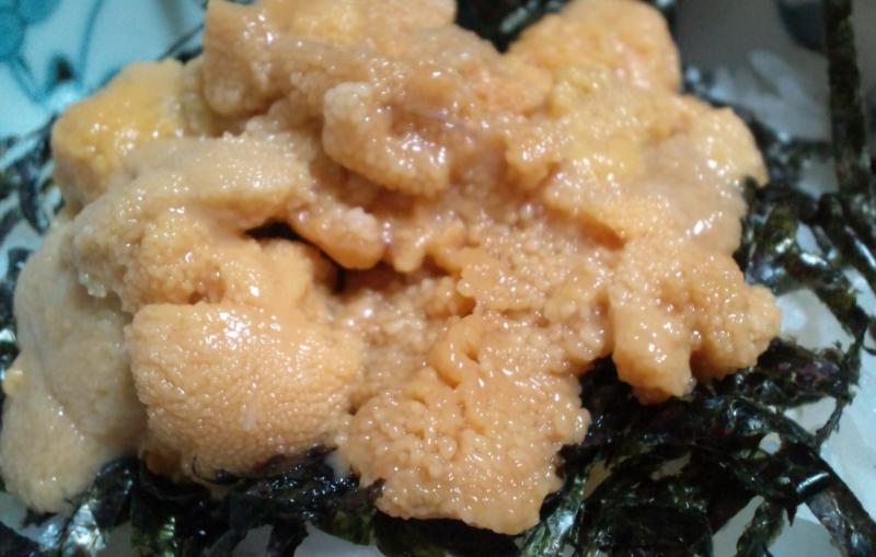 牛乳ビン入りの、新鮮なウニを買ってきました。