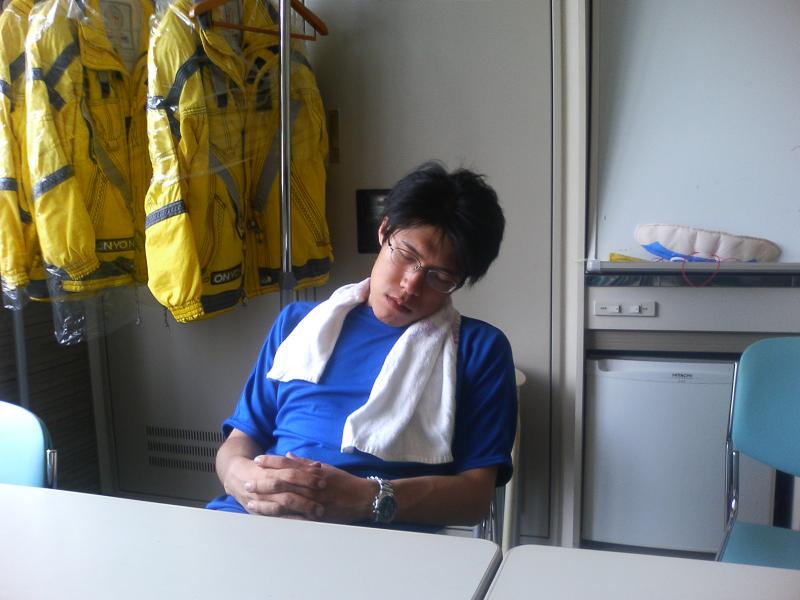 前日徹夜したスタッフは椅子に座った態勢で上手に寝ることが出来ます。