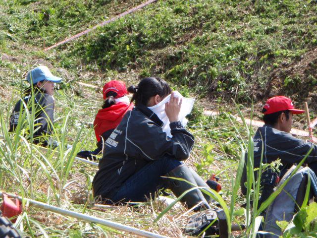 ようやくセクションが使用できるまで出来上がり、パラスタッフが試走を始めたところを見学中の画です。