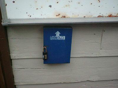 ダイヤル式の南京錠。この箱の中に事務所のカギが入っています。